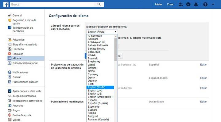 - Selecciona "English (Pirate)" y? ¡listo! Ya eres un auténtico ciberpirata.