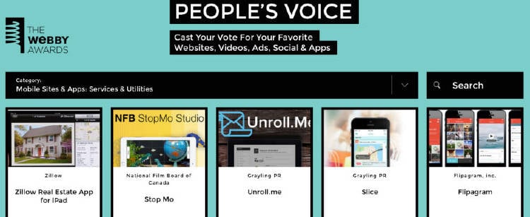 Los Webby Awards son los premios que otorga anualmente, desde 1996, la Academia Internacional de las Artes y las Ciencias. Unos galardones que, a pesar de no estar exentos de polémica, son muy valorados. Cada año se premia a dos ganadores: los favoritos del jurado y los del público, y las categorías incluyen no solamente páginas web, sino también publicidad interactiva, vídeos online y móviles. Echemos un vistazo a los nominados de este año. ¡Tú también puedes votar!