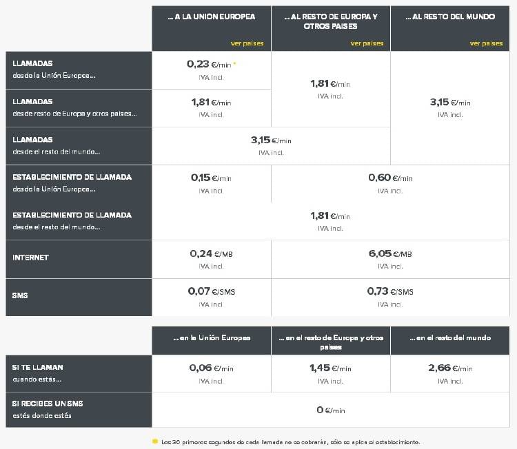 Esta tarifa s aplicable a buena parte de los países comunitarios, además de Estados Unidos, Andorra (ojo, este pequeño país vecino tiene de lo contrario unos precios en itinerancia altísimos), Rusia o Nueva Zelanda.