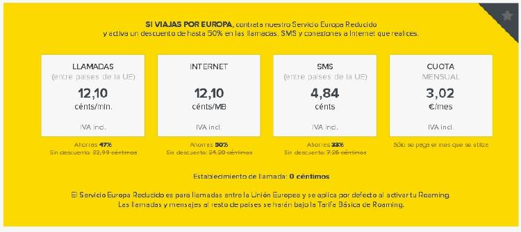 En un reciente post ya anunciamos los nuevos precios de MÁSMÓVIL para viajeros, pero como el saber no ocupa lugar, os los recordamos. Se trata del Servicio Europa Precio Reducido y, por una cuota de 2,5 euros al mes, te permite pagar un 50% menos en tu conexión a Internet, un 47% menos en las llamadas y un tercio menos por cada SMS que envíes. Además, el establecimiento de llamadas desaparece.